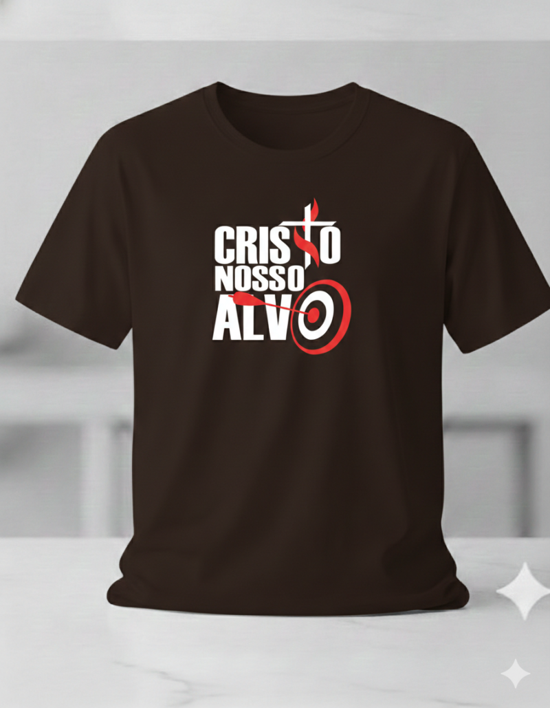 A Camiseta Cristo Nosso Alvo – Modelo Clássico foi criada para quem carrega no coração o propósito de levar o Evangelho além das quatro paredes.