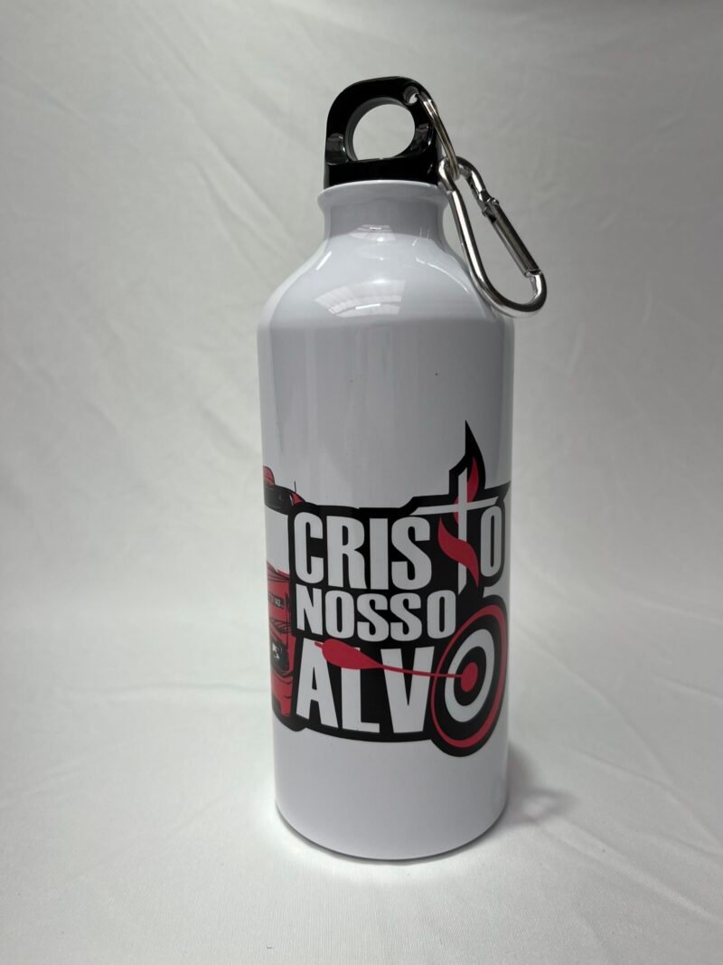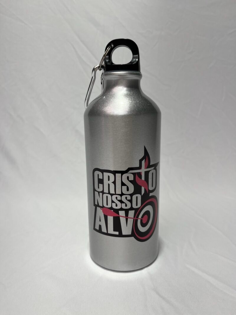 A Garrafa de Alumínio Cristo Nosso Alvo foi criada para te acompanhar no dia a dia, mantendo sua bebida sempre por perto enquanto você carrega uma mensagem que transforma vidas.